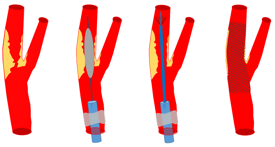 Il s’agit d’une intervention mini-invasive, consistant à implanter une endoprothèse (stent) en passant par une artère du pli de l’aine, sous contrôle radiologique, pour redonner à l’artère carotide un calibre normal.